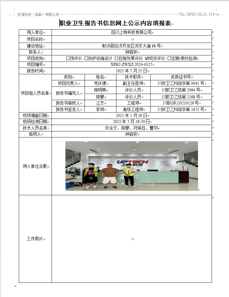 绵阳市华阳实业有限责任公司职业病危害因素现状评价