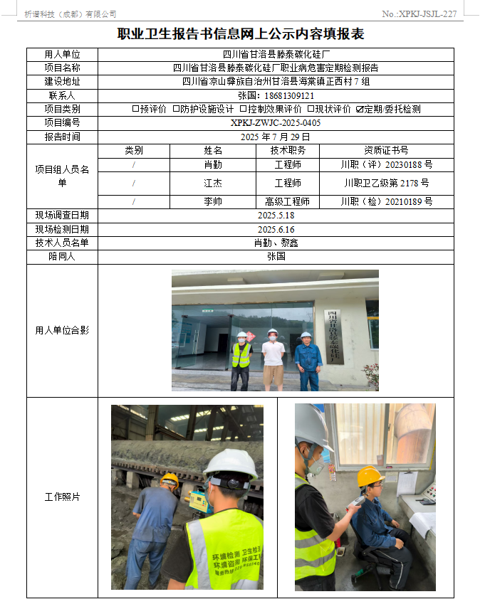 四川省甘洛县滕泰碳化硅厂职业病危害因素定期检测