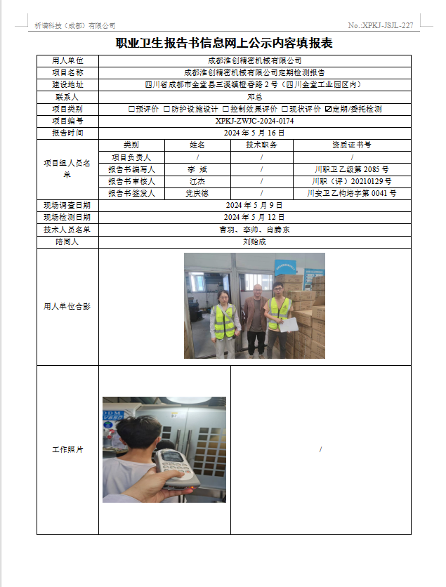 成都淮创精密机械有限公司定期检测