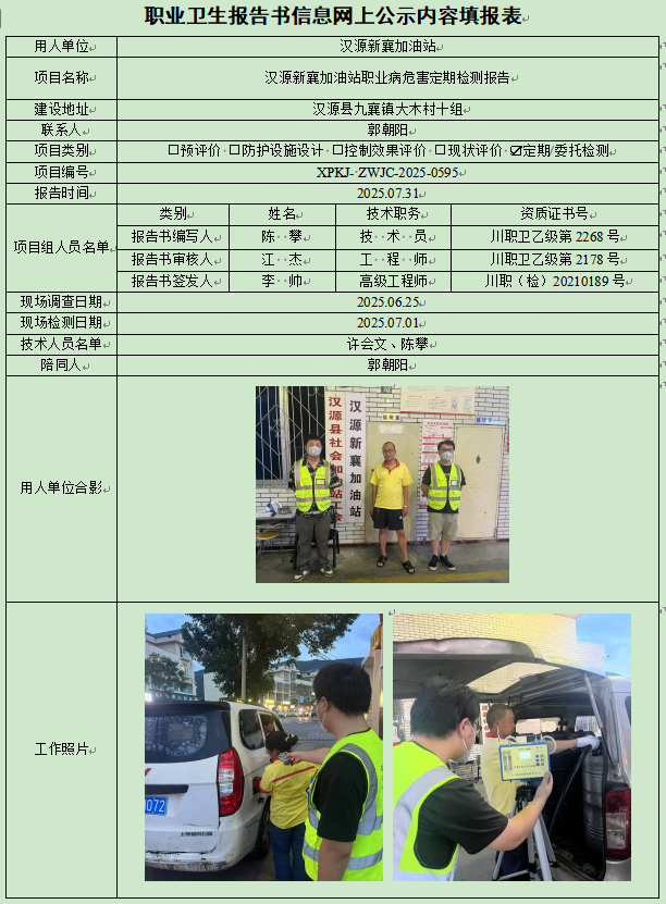 汉源新襄加油站职业病危害因素定期检测