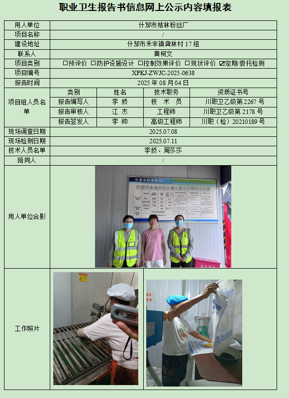 什邡市桔林粉丝厂职业病危害因素定期检测