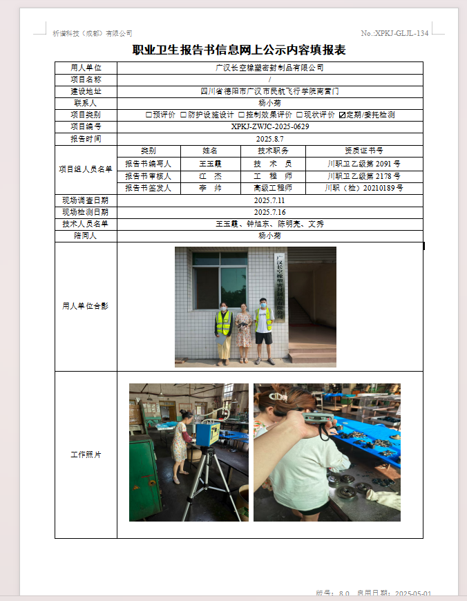 广汉长空橡塑密封制品有限公司职业病危害因素定期检测