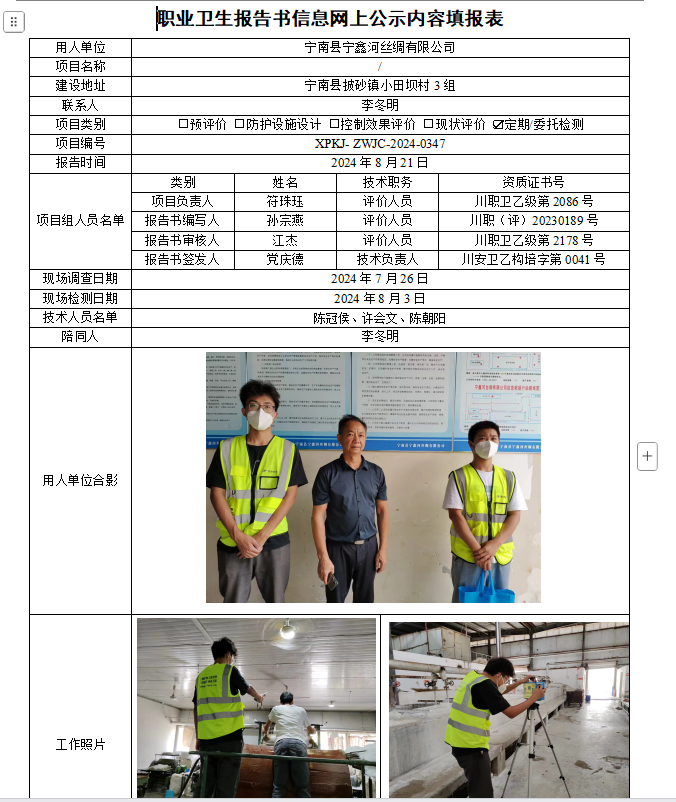 宁南县宁鑫河丝绸有限公司职业病危害因素定期检测