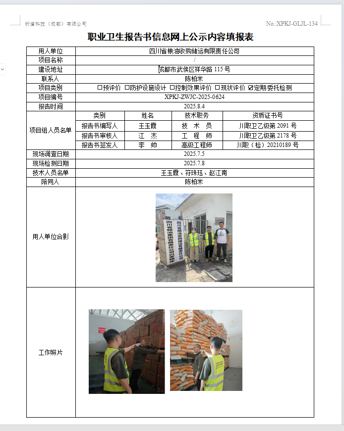 四川省粮油收购储运有限责任公司职业病危害因素定期检测