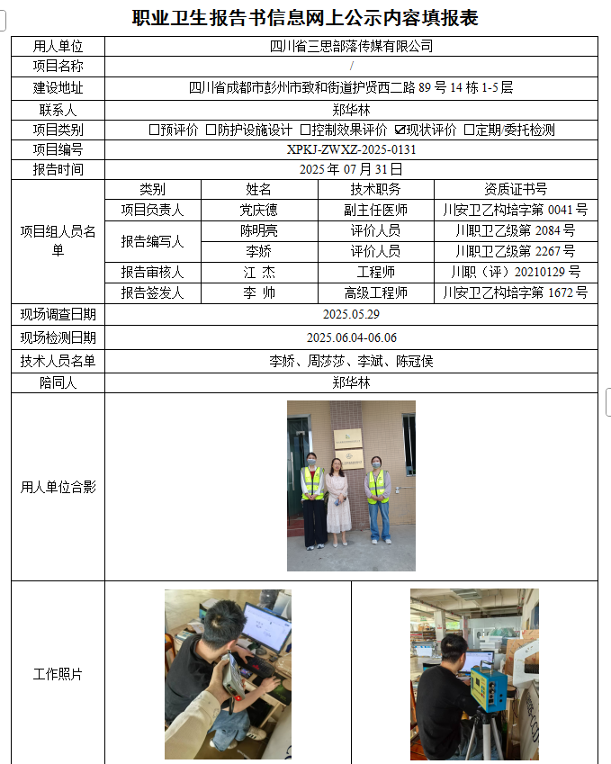 四川省三思部落传媒有限公司职业病危害因素现状评价
