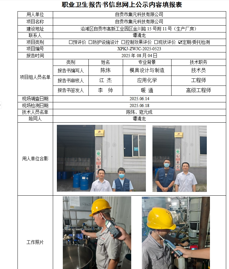 宜宾市南溪区新望加油站有限公司黄沙镇加油站职业病危害因素定期检测