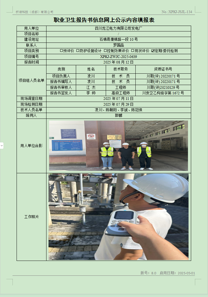 四川蜀雅电力有限责任公司职业病危害因素定期检测