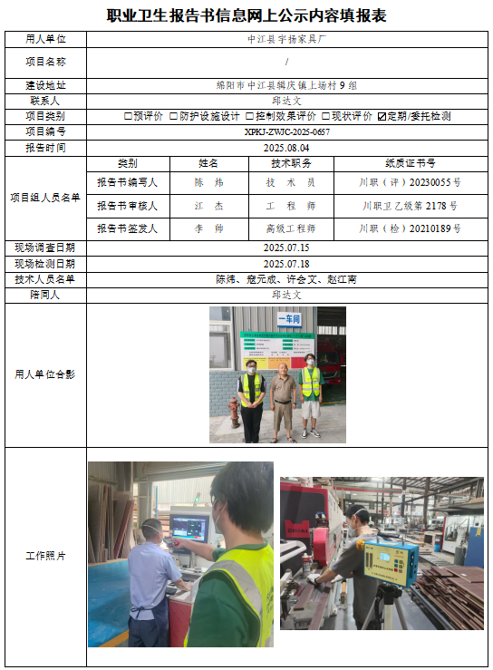 自贡市燃气有限责任公司职业病危害因素定期检测