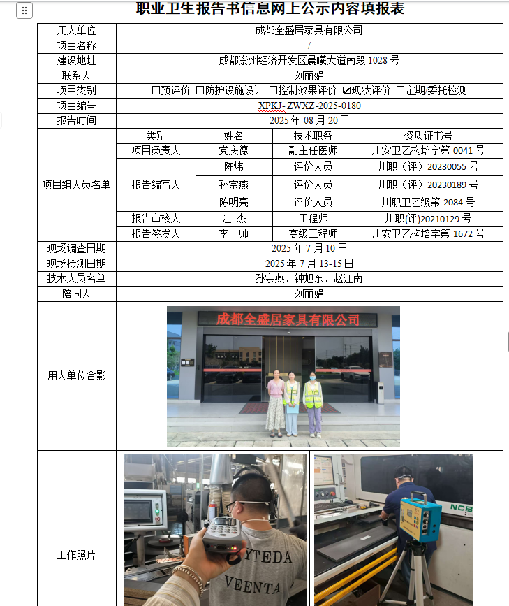 成都拓利科技股份有限公司职业病危害因素定期检测