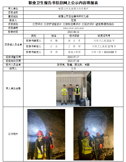 峨眉山市龙池镇大沟石膏矿职业病危害因素定期检测