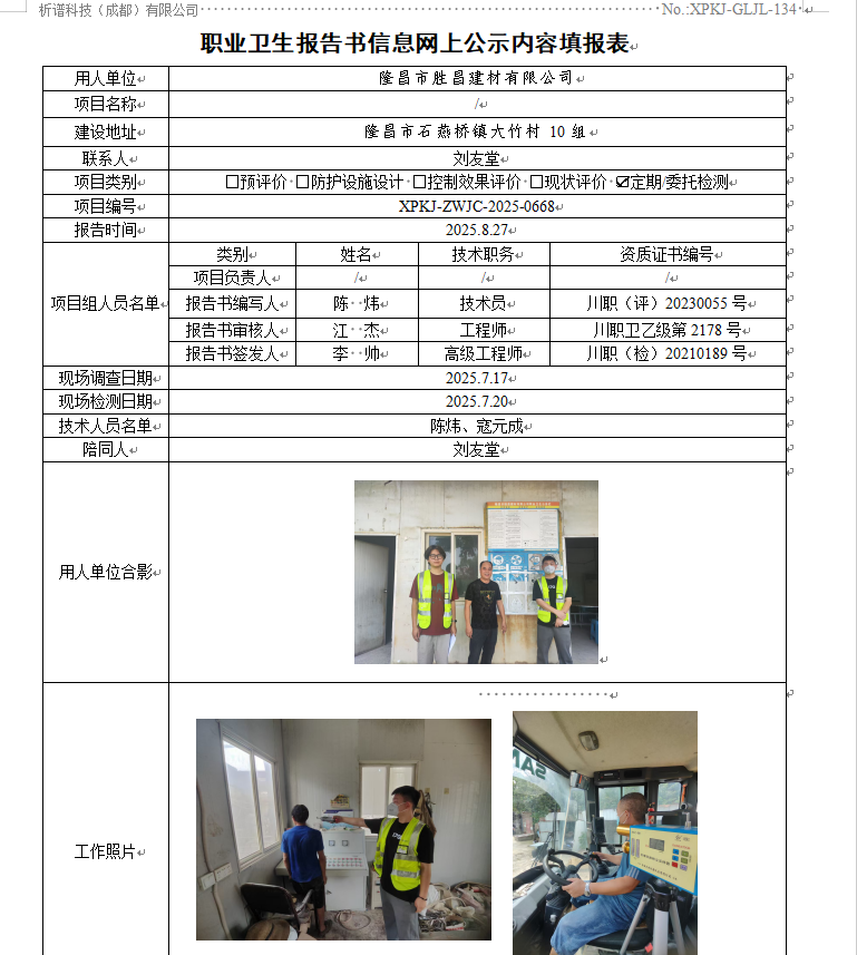 隆昌市胜昌建材有限公司职业病危害因素定期检测
