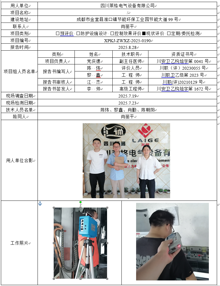 四川莱格电气设备有限公司职业病危害因素现状评价