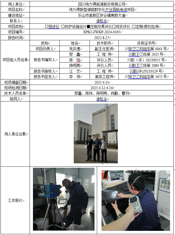 四川伟力得能源股份有限公司职业病危害因素控制效果评价