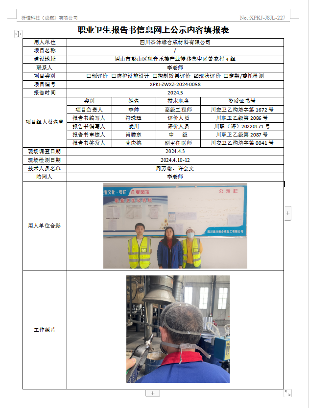 四川杰沐缘合成材料有限公司现状评价