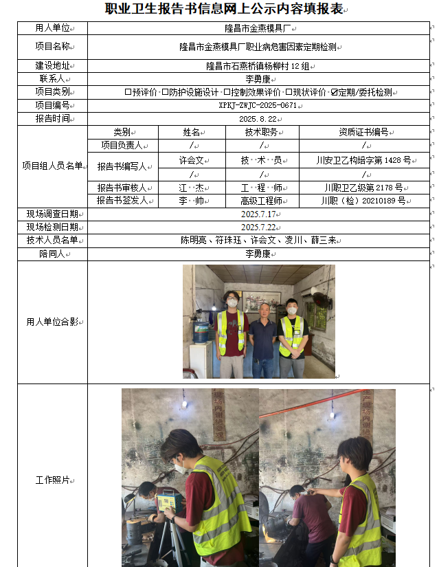 成都市通用金刚石工具有限公司职业病危害因素定期检测