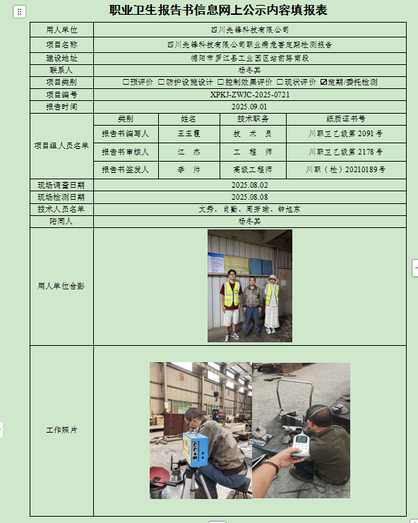 四川亿欣新材料有限公司职业病危害因素定期检测