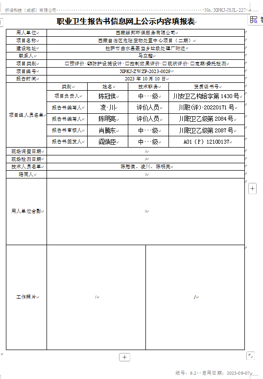 西藏绿邦环保服务有限公司西藏自治区危险废物处置中心项目(二期)职业病危害因素防护设施设计专篇