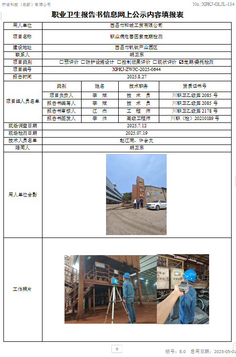 西昌市和城工贸有限公司职业病危害因素定期检测