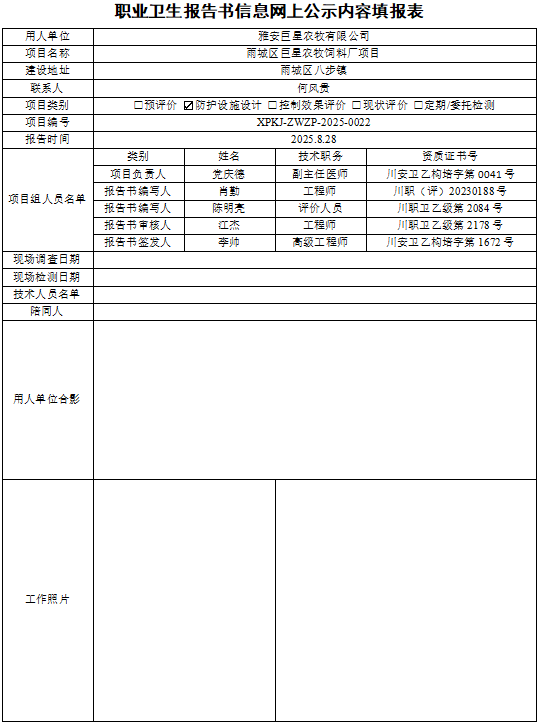 雅安巨星农牧有限公司职业病危害因素防护设施设计专篇