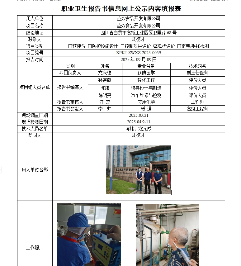 四川志涯电气设备有限公司职业病危害因素定期检测