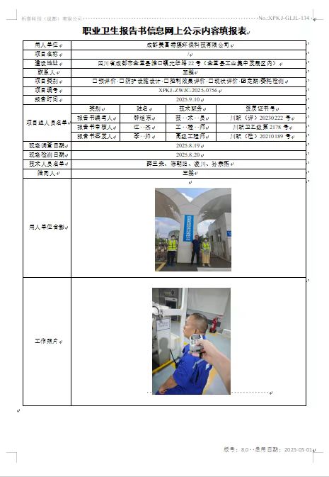 成都美富特膜环保科技有限公司职业病危害因素定期检测