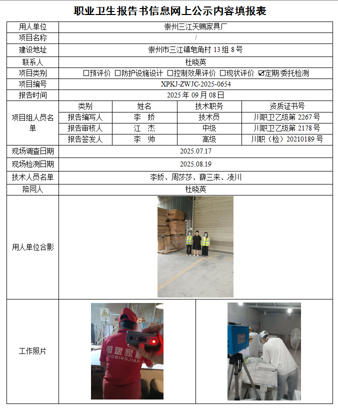 成都新航工业科技股份有限公司职业病危害因素定期检测