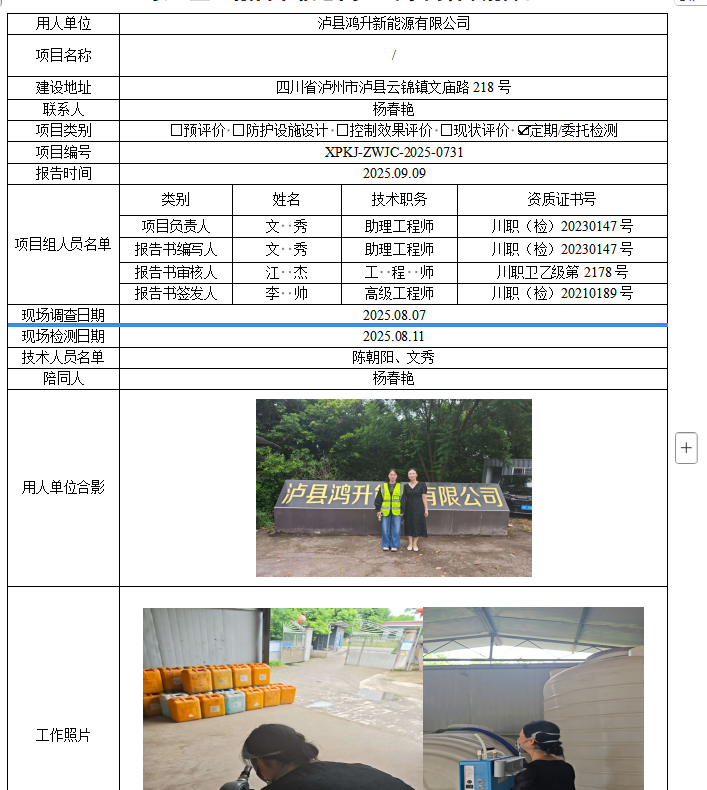 四川宏晟生物科技有限公司职业病危害因素定期检测