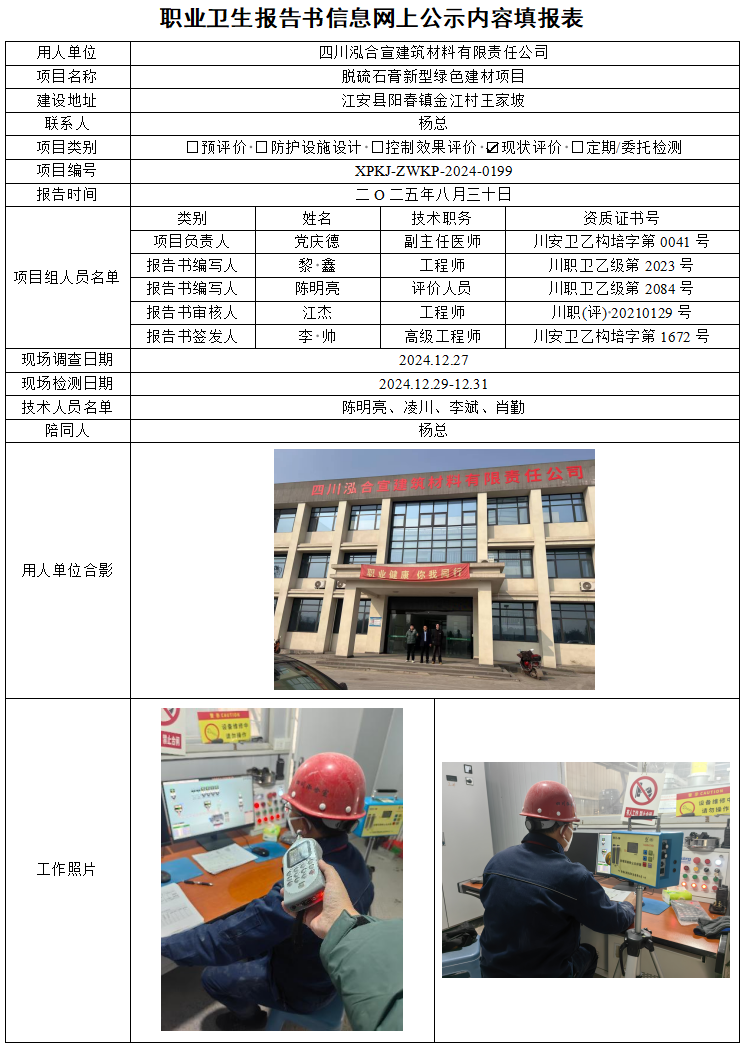 四川泓合宣建筑材料有限责任公司职业病危害因素控制效果评价