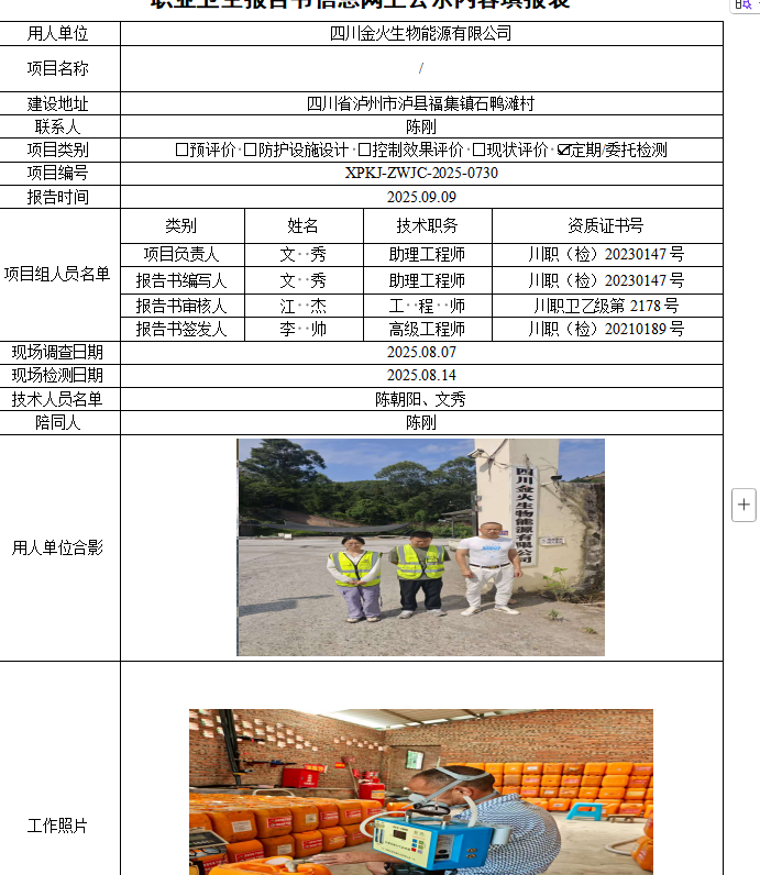 泸州宏晶玻璃加工有限责任公司职业病危害因素定期检测
