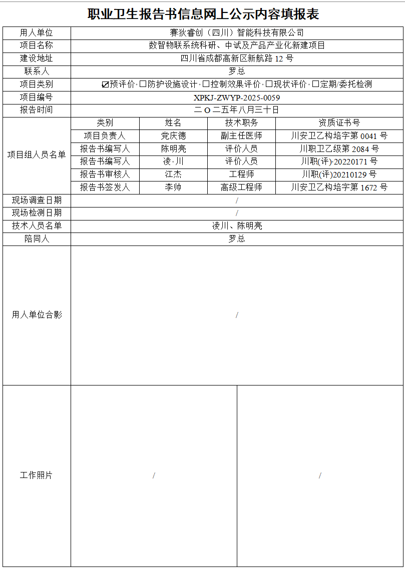四川赛狄信息技术股份公司职业病危害因素预评价