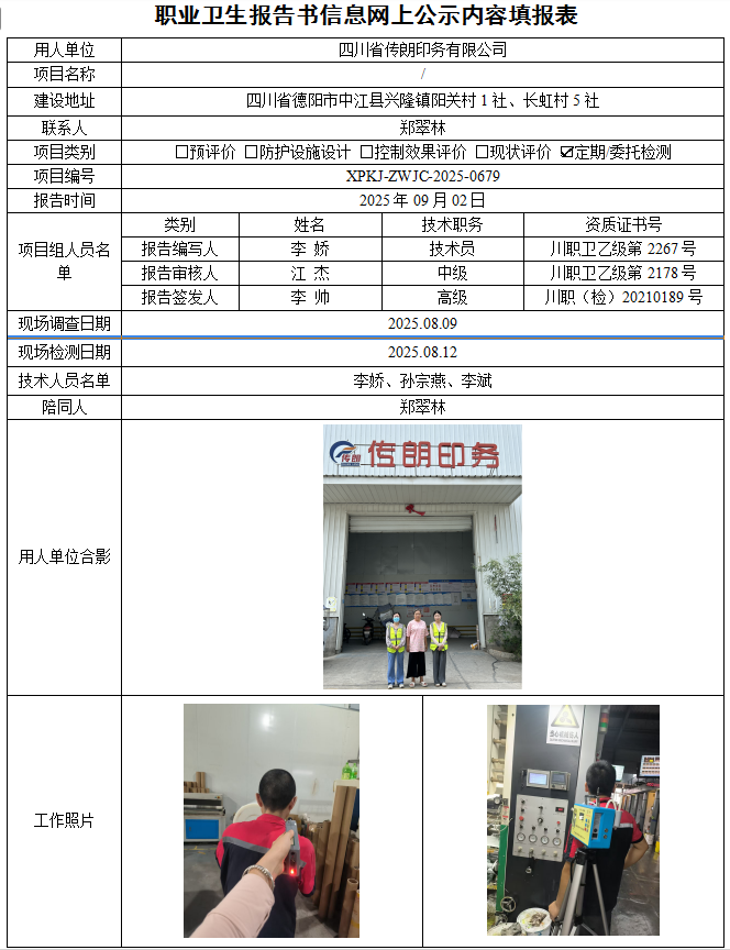 成都月之武冠食品有限责任公司职业病危害因素定期检测
