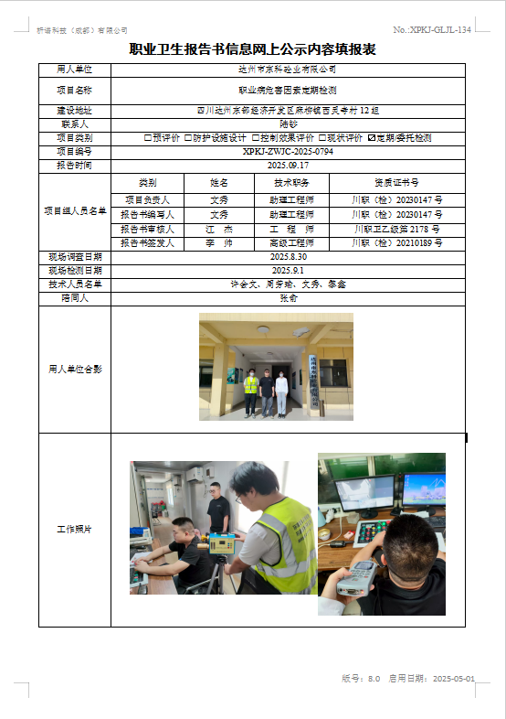 成都长润众兴新材料科技有限公司职业病危害因素定期检测