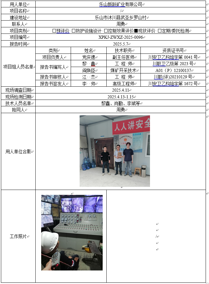 乐山新跃矿业有限公司职业病危害因素现状评价