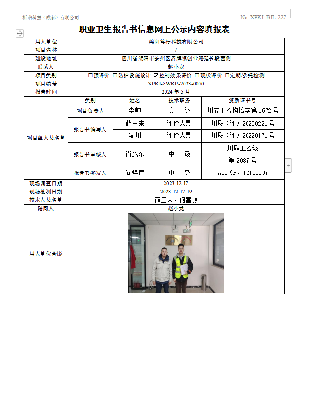 绵阳笃行科技有限公司控制效果评价
