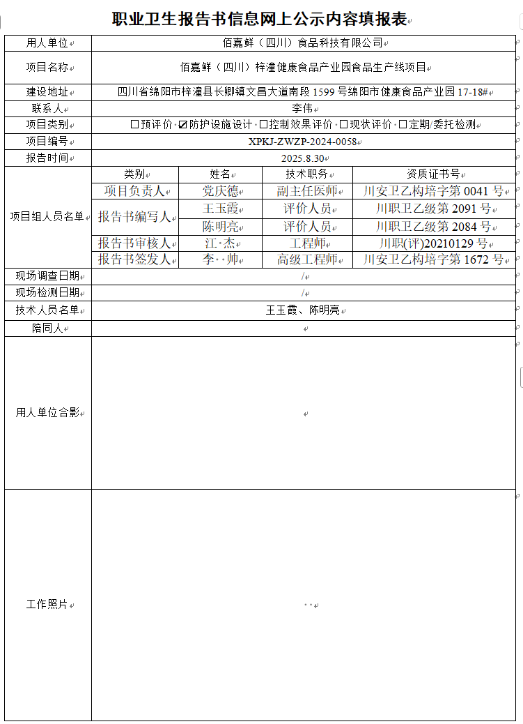 佰嘉鲜(四川)食品科技有限公司职业病危害因素防护设施设计专篇