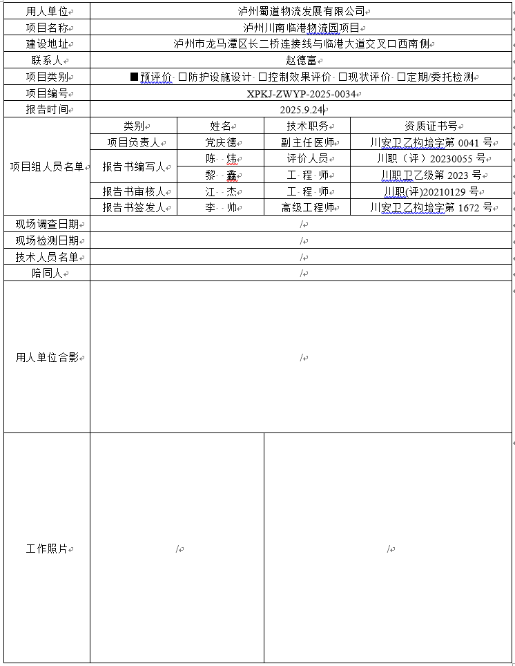 泸州蜀道物流发展有限公司职业病危害因素预评价