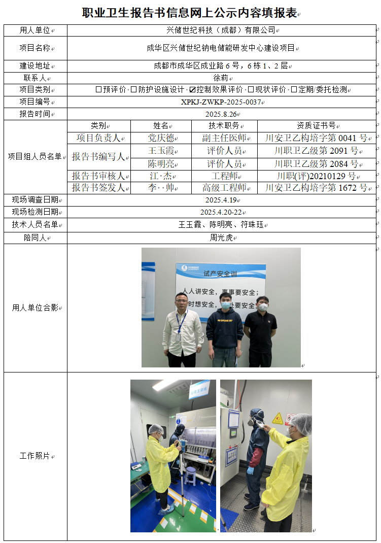 兴储世纪科技(成都)有限公司职业病危害因素控制效果评价