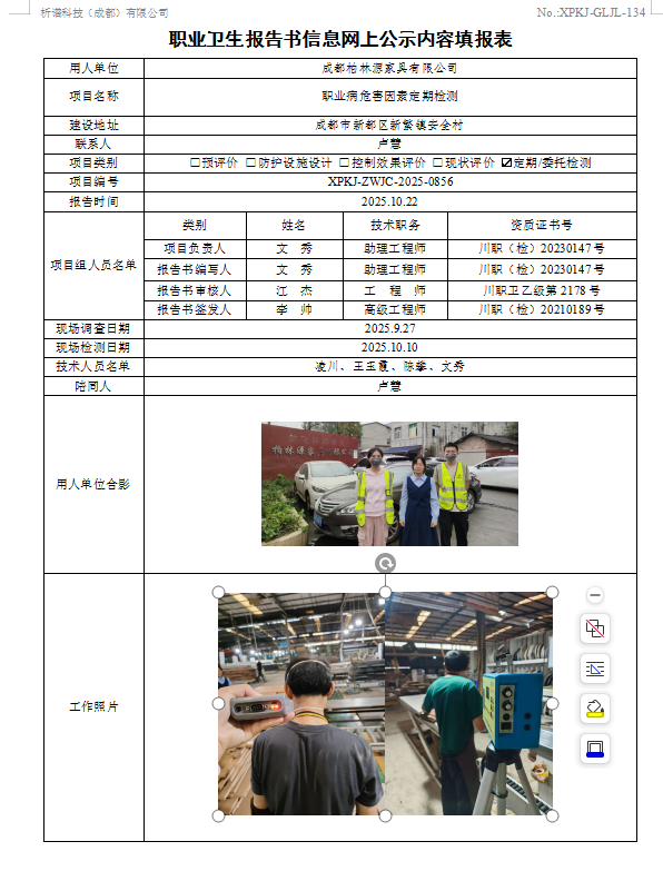 成都安胜汽车零部件有限公司职业病危害因素现状评价