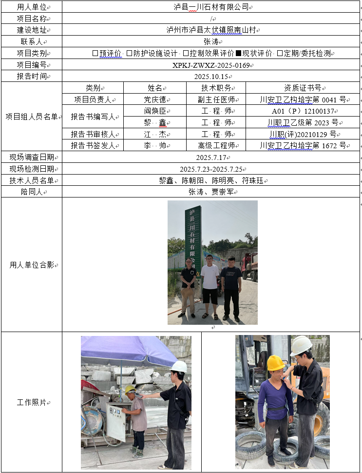 四川溪水合环保科技有限公司职业病危害因素定期检测