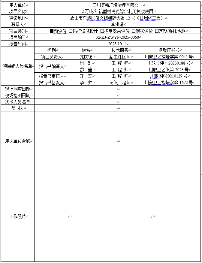 内江德天力建筑材料有限公司职业病危害因素定期检测