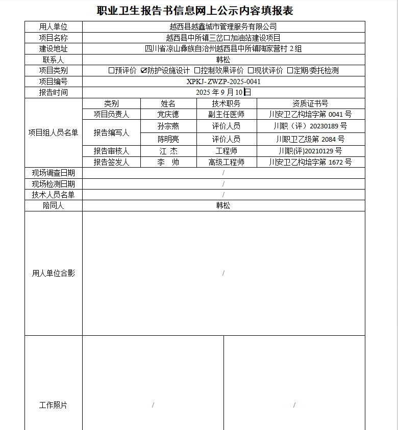 四川效佳科技有限公司职业病危害因素控制效果评价