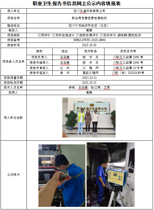宜宾华庆汽车部件有限公司职业病危害因素控制效果评价