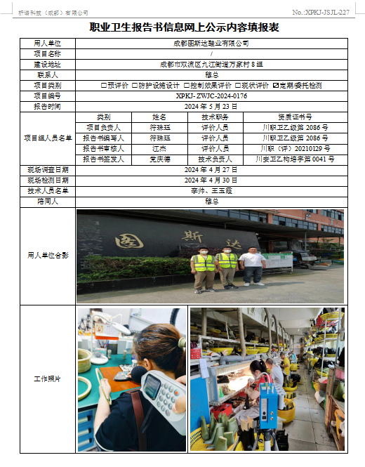 成都市贞观盛光电子科技有限公司职业病危害因素定期检测
