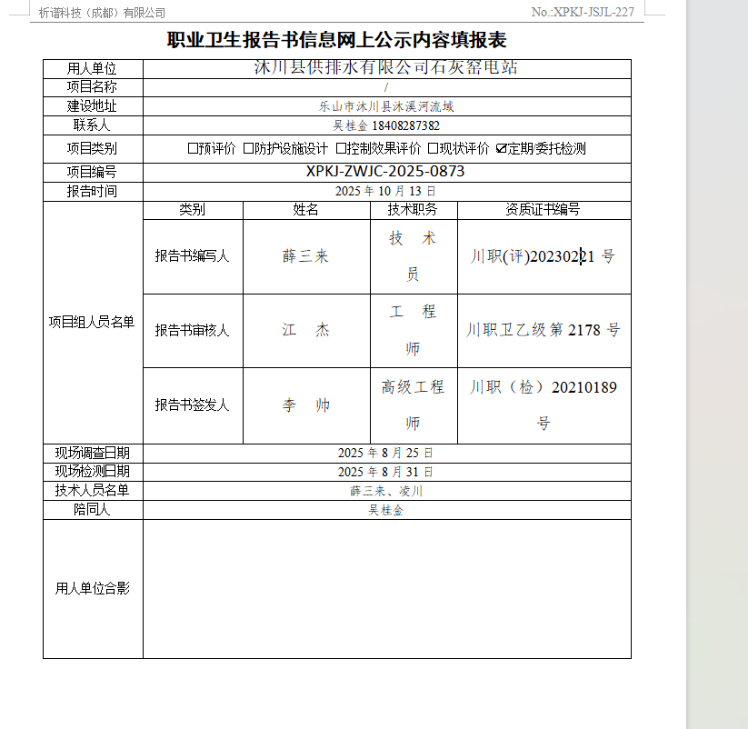 职业卫生检测