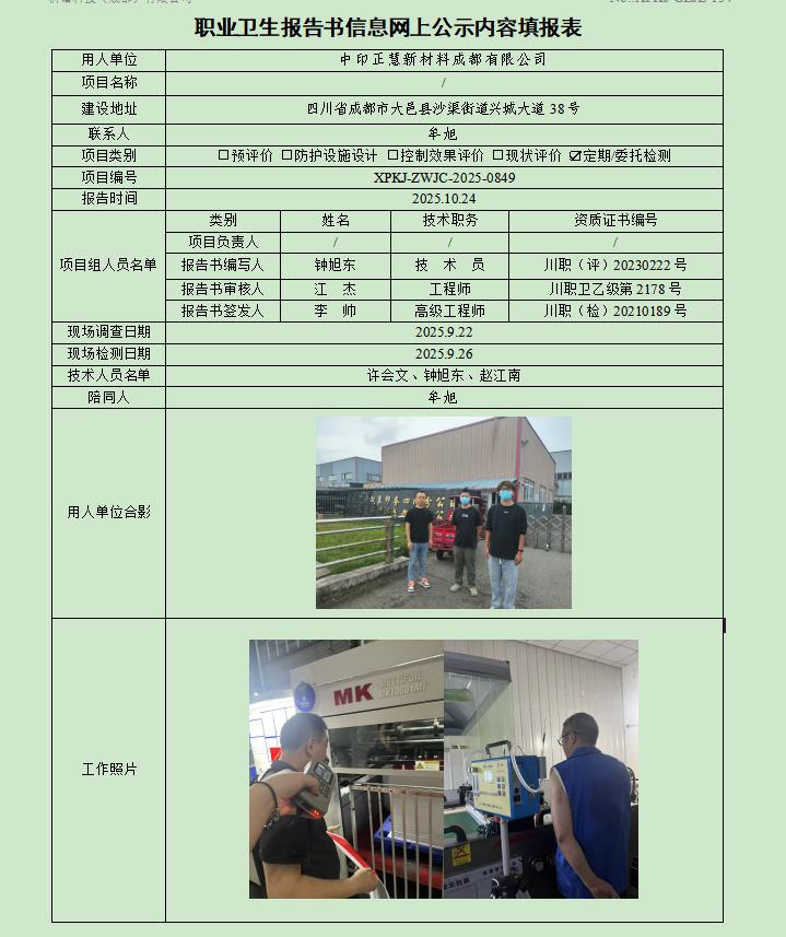 成都红紫荆包装印务有限公司职业病危害因素定期检测