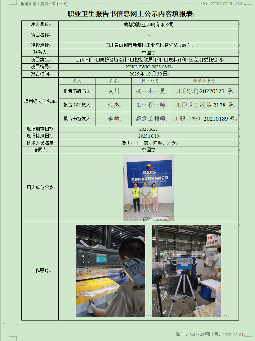 宜宾华庆汽车部件有限公司职业病危害因素控制效果评价
