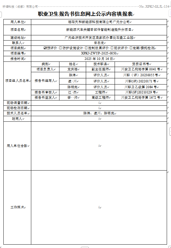 弥荣(成都)实业有限公司职业病危害因素定期检测