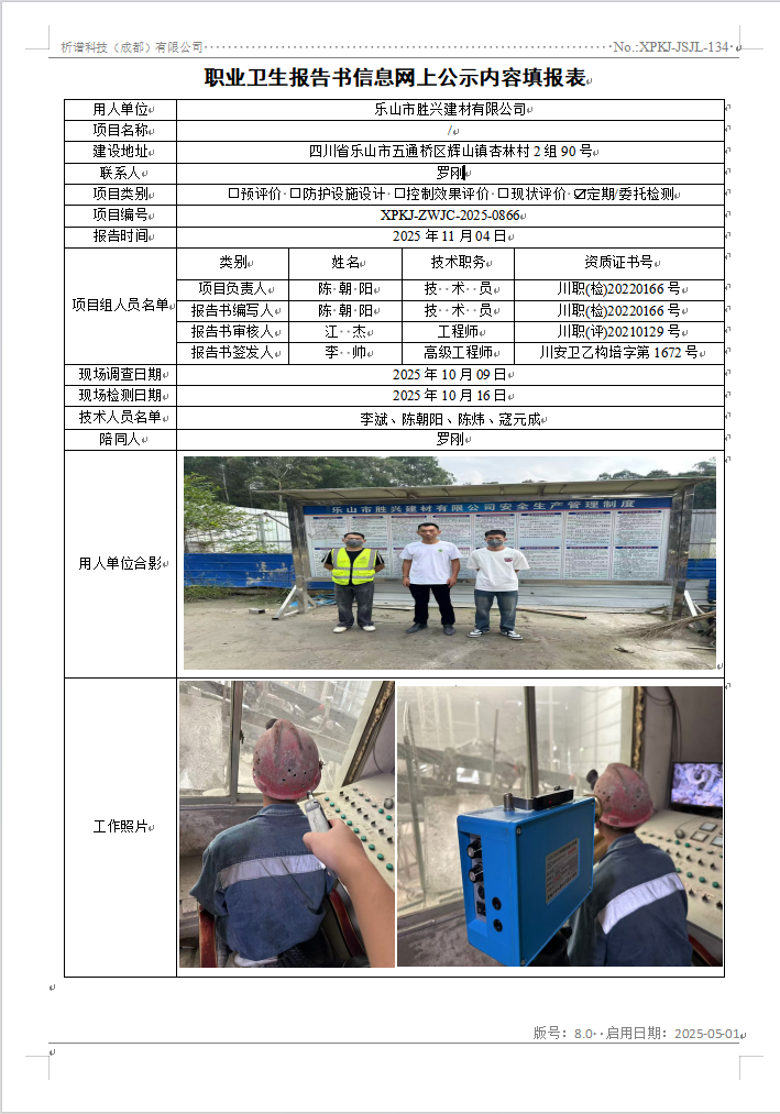 四川路道现代交通设施有限公司职业病危害定期检测