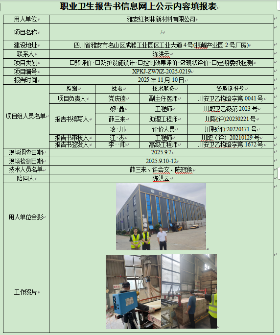 南充馨亿源鞋业有限公司职业病危害定期检测