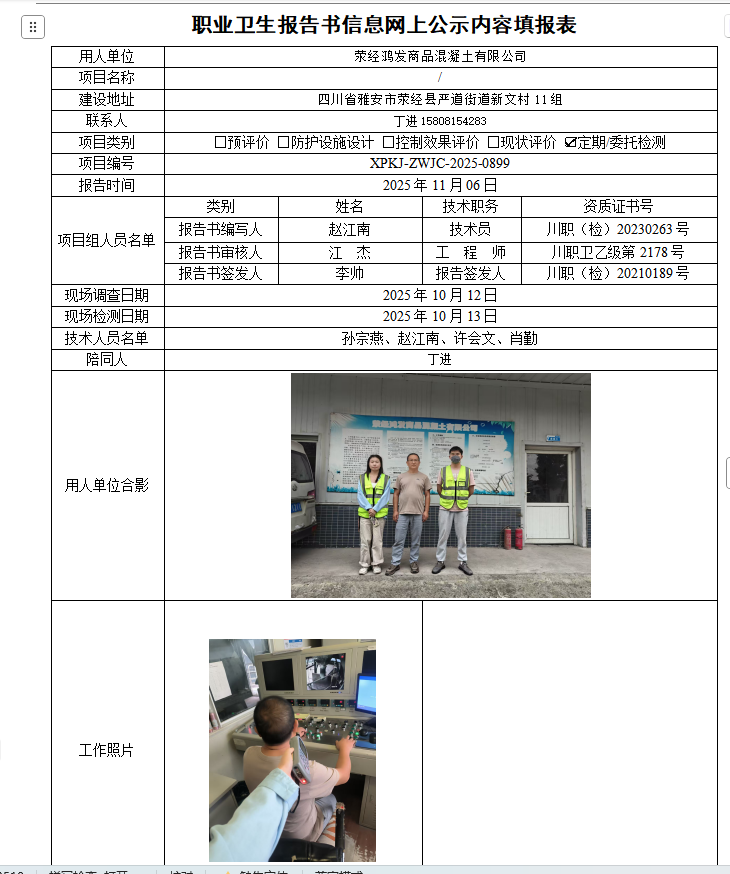荥经鸿发商品混凝土有限公司职业病危害定期检测